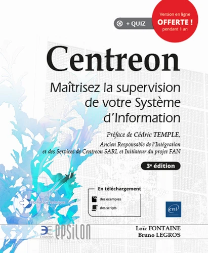 Ce livre sur Centreon s’adresse à toute personne souhaitant découvrir ou mettre en oeuvre une solution de supervision efficace en phase avec les meilleures pratiques du marché : chefs de projet, directeurs des systèmes d’informations, responsables informatiques, intégrateurs, administrateurs réseaux et systèmes… Centreon est l’outil indispensable pour la supervision des systèmes d’information, de l’infrastructure au respect des SLA.