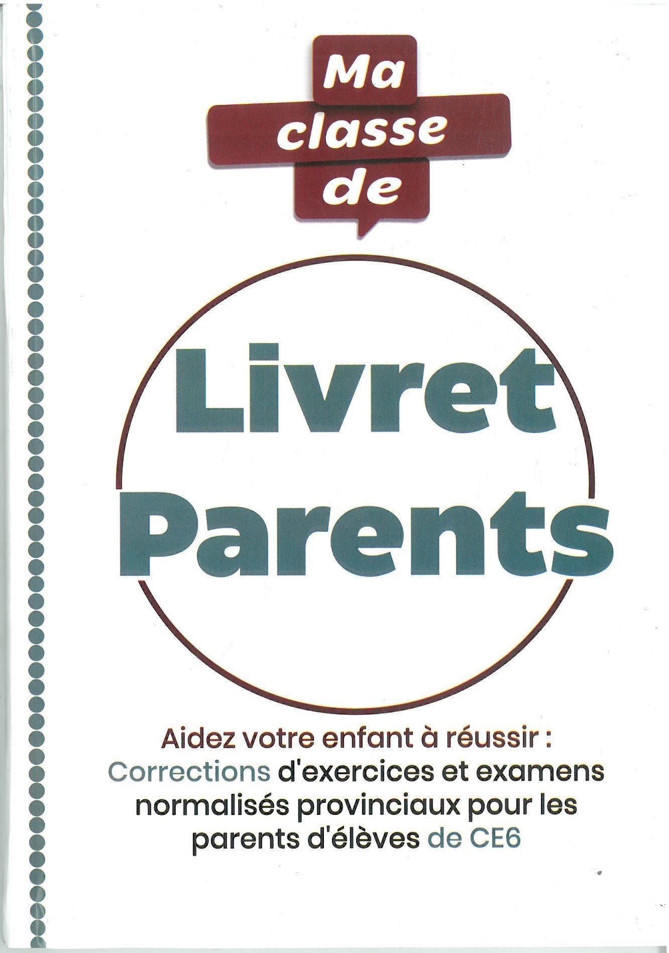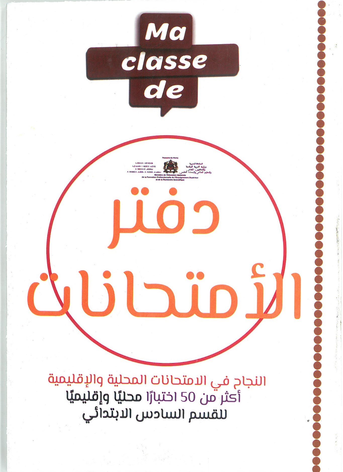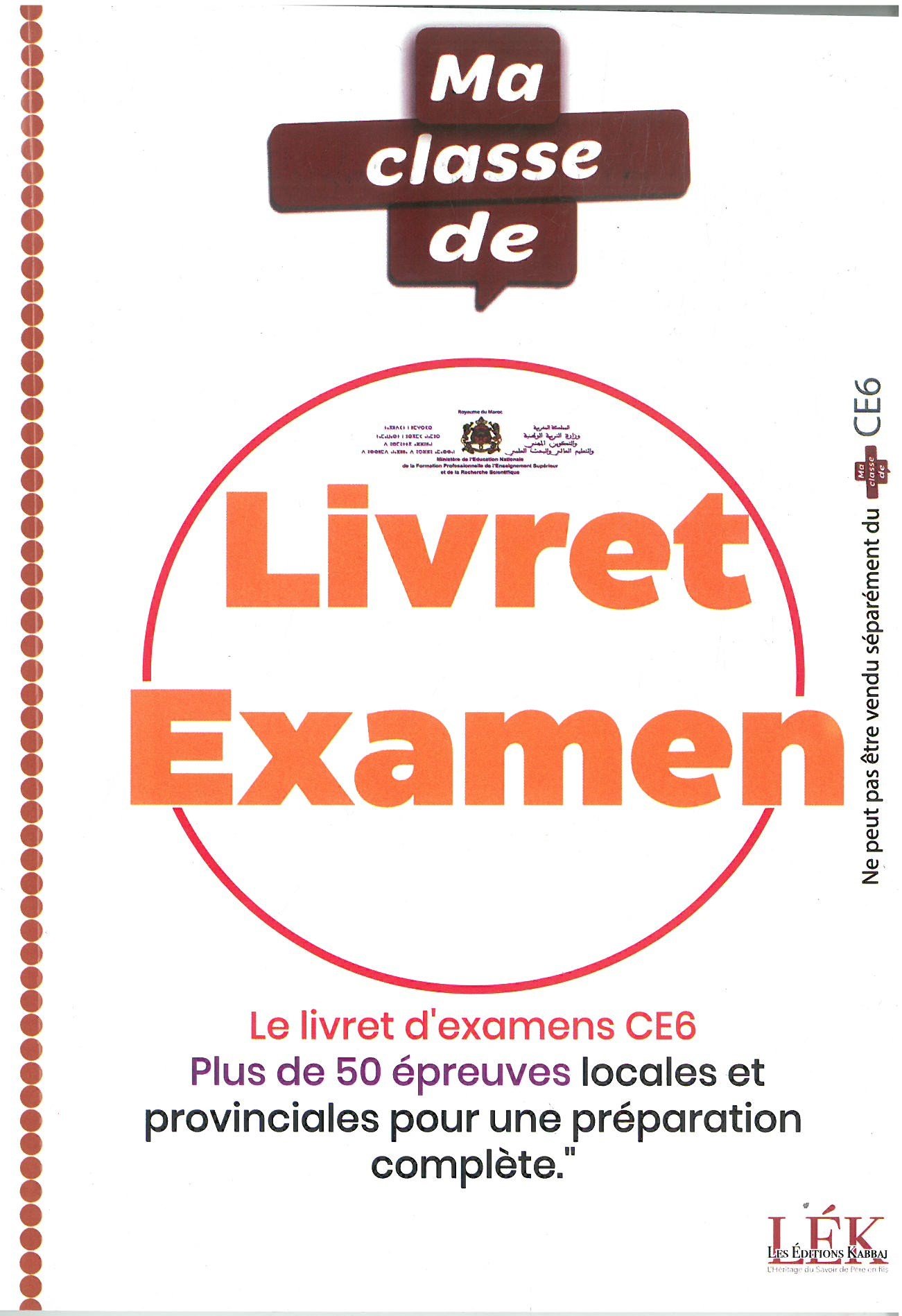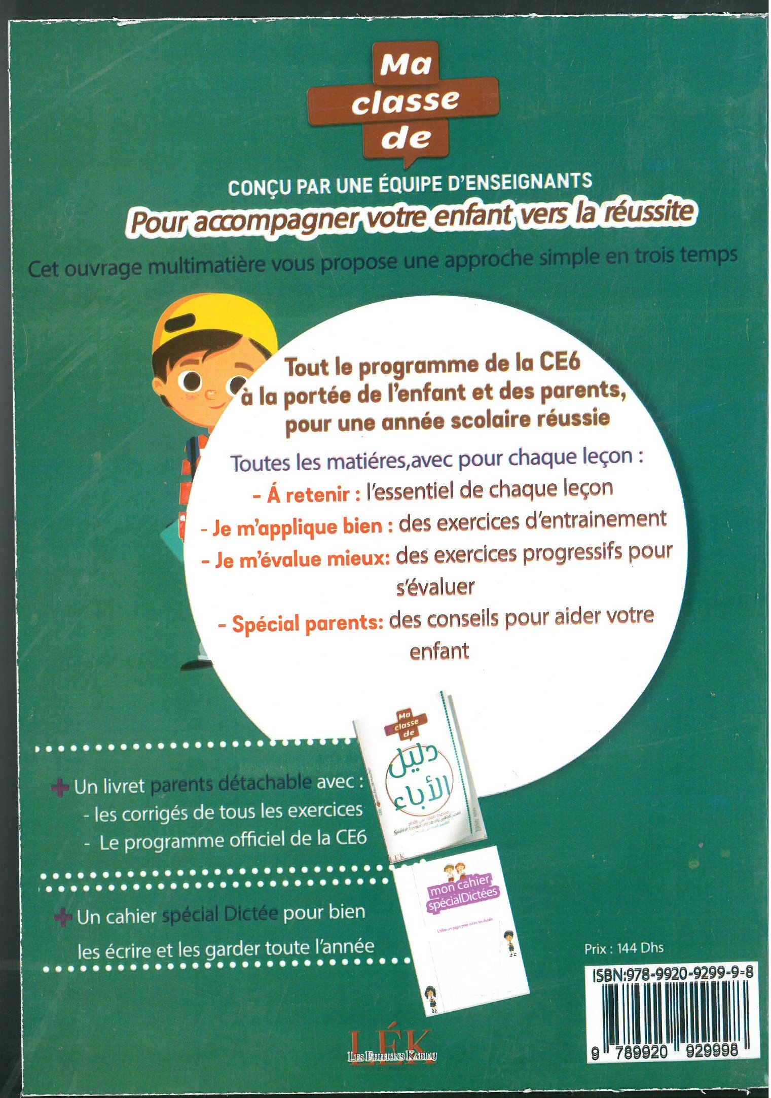 | Contenu du pack | ✔ 3 livres (Ma Classe CE6 + Livret Parents + دفتر الامتحانات) ✔ Feuilles d’examens (وراق الامتحانات) |