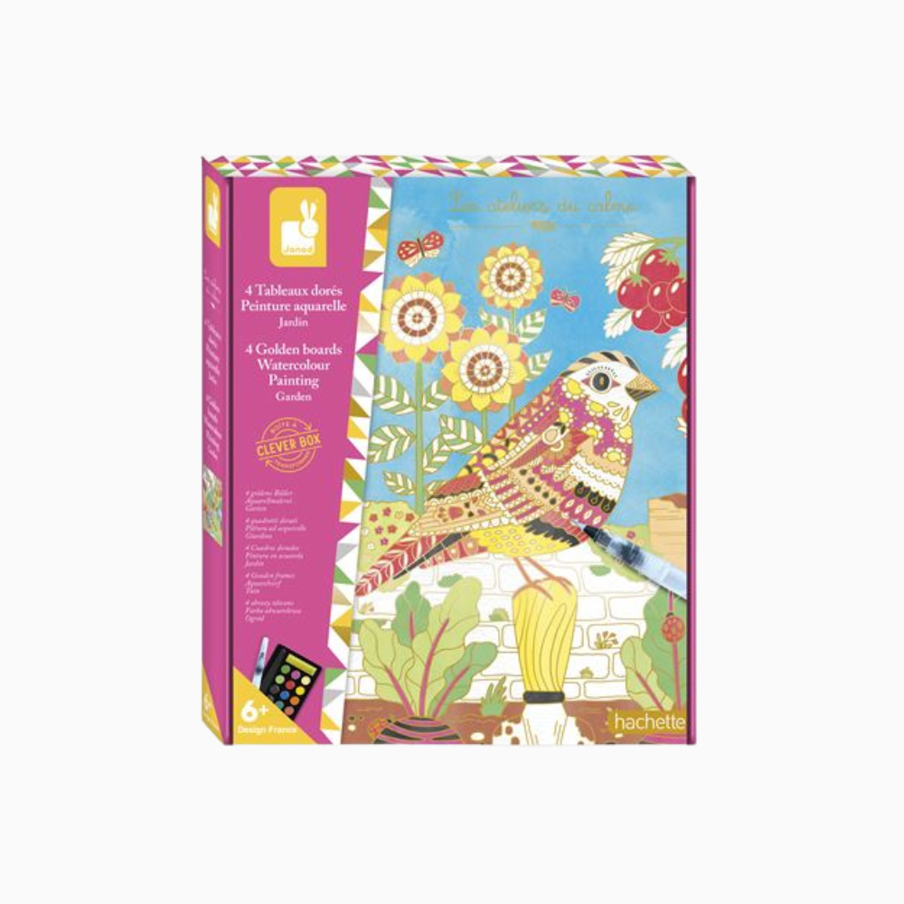 Le jardin est un endroit qui regorge de surprises et d’expériences ! Ce kit créatif est composé de 4 tableaux représentant des animaux du jardin. La palette aquarelle de 15 couleurs et le pinceau à réservoir d’eau en font une activité originale. Les traits en dorures empêchent de dépasser et donc de mélanger les couleurs : résultat réussi garanti ! Le petit plus ? Le packaging se transforme en un joli cadre pour mettre en valeur ses créations ! Cette activité permet de développer la motricité fine et la patience et nécessite environ 1h par tableau. Elle est idéale pour les enfants à partir de 6 ans.