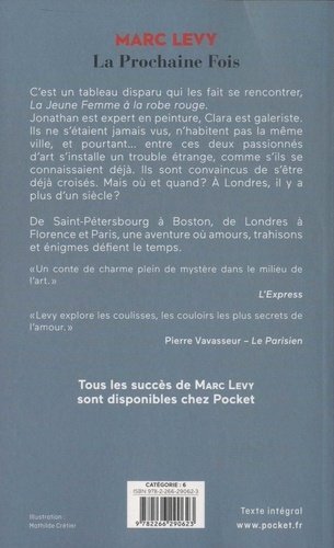 C’est un tableau disparu qui les fait se rencontrer, La Jeune Femme à la robe rouge. Jonathan est expert en peinture, Clara est galeriste. Ils ne s’étaient jamais vus, n’habitent pas la même ville, et pourtant… entre ces deux passionnés d’art s’installe un trouble étrange, comme s’ils se connaissaient déjà. Ils sont convaincus de s’être déjà croisés. Mais où et quand ? A Londres, il y a plus d’un siècle ? De Saint-Pétersbourg à Boston, de Londres à Florence et Paris, une aventure où amours, trahisons et énigmes défient le temps.