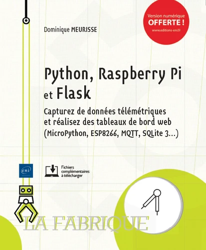 Ce livre s’adresse aux amateurs et professionnels de la programmation et/ou de l’électronique désirant découvrir ou approfondir les possibilités offertes par le langage Python, le nano-ordinateur Raspberry Pi et le framework Flask pour la capture de données télémétriques et leur présentation dans une interface web. Pour tirer le meilleur profit de la lecture de ce livre, des notions de programmation orientée objet et quelques rudiments sur le langage Python sont nécessaires.
