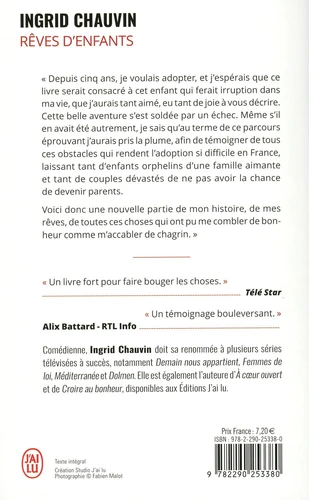 « Depuis cinq ans, je voulais adopter, et j’espérais que ce livre serait consacré à cet enfant qui ferait irruption dans ma vie, que j’aurais tant aimé, eu tant de joie à vous décrire. Cette belle aventure s’est soldée par un échec. Même s’il en avait été autrement, je sais qu’au terme de ce parcours éprouvant j’aurais pris la plume, afin de témoigner de tous ces obstacles qui rendent l’adoption si difficile en France, laissant tant d’enfants orphelins d’une famille aimante et tant de couples dévastés de ne pas avoir la chance de devenir parents.
